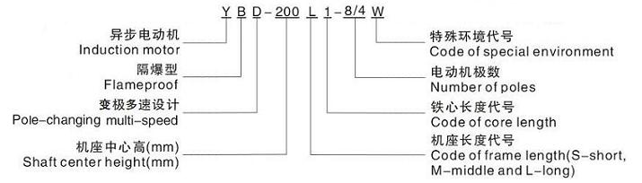 YBD系列防爆雙速/變極調速電機型號代表意義: